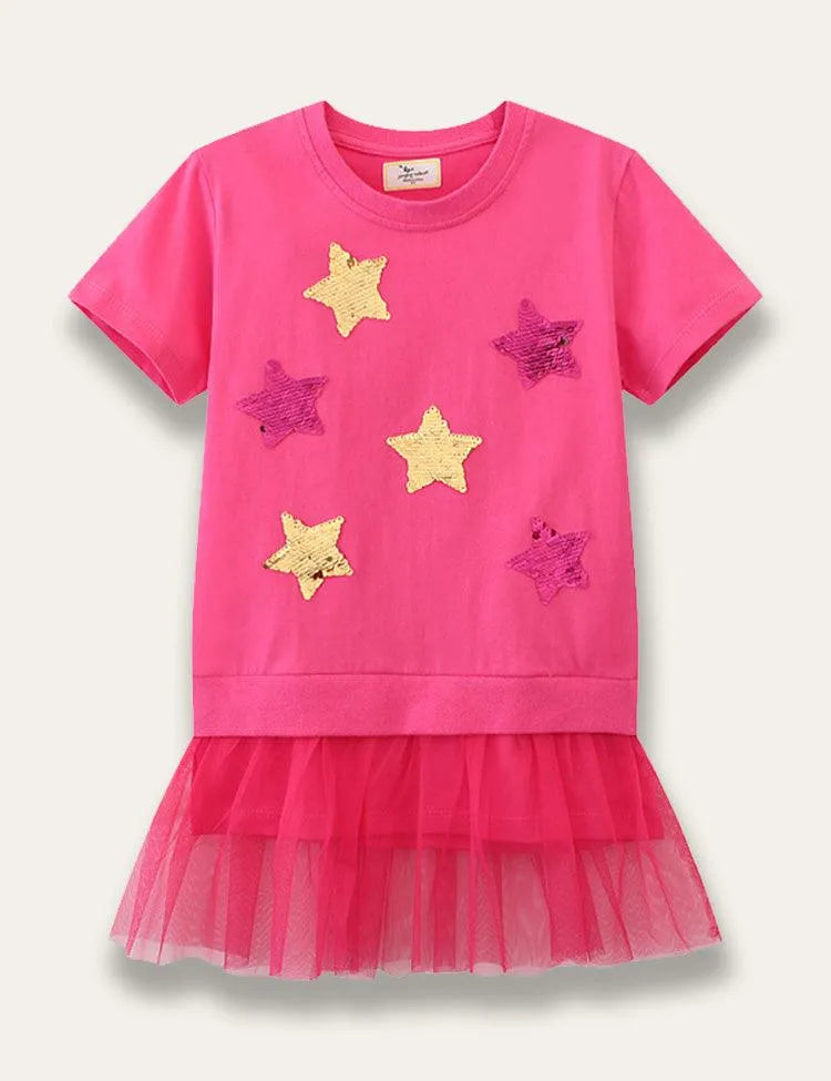 فستان تول مطرز بالترتر