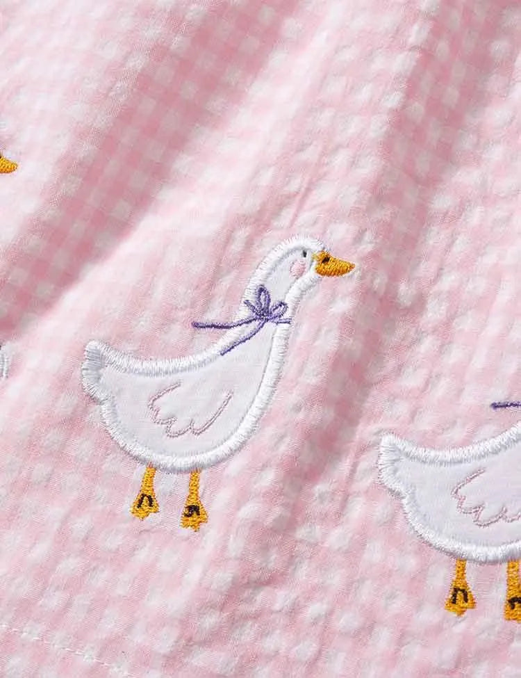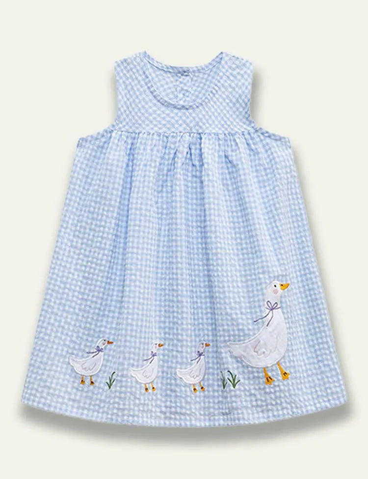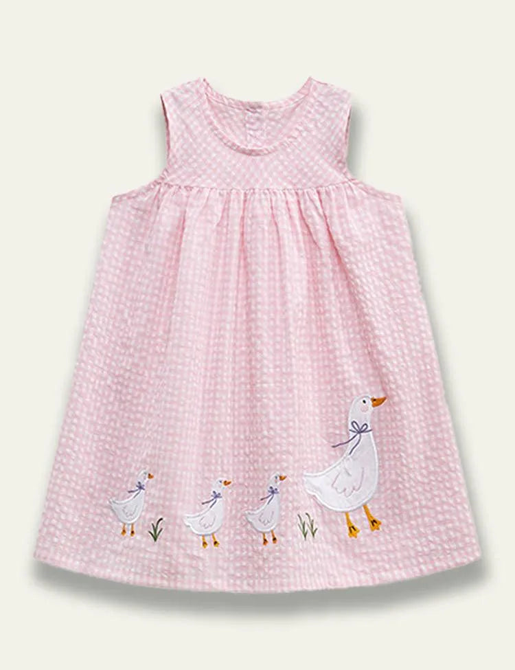 فستان بلا أكمام مزين ببط أبيض