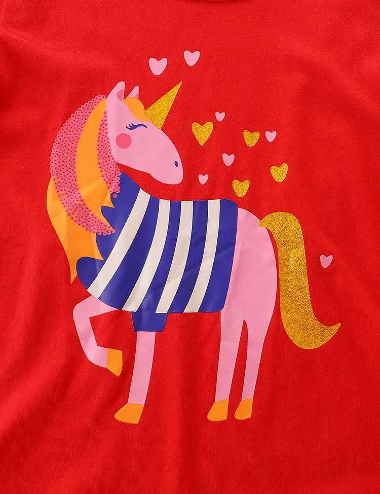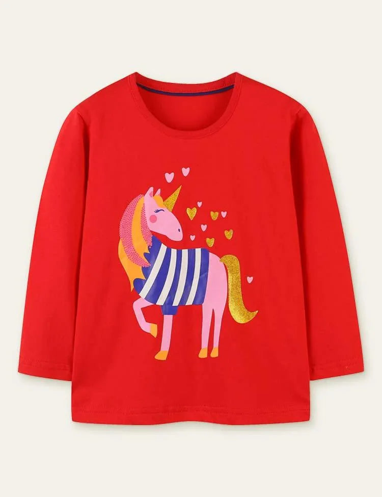 تي شيرت بأكمام طويلة وطبعة يونيكورن