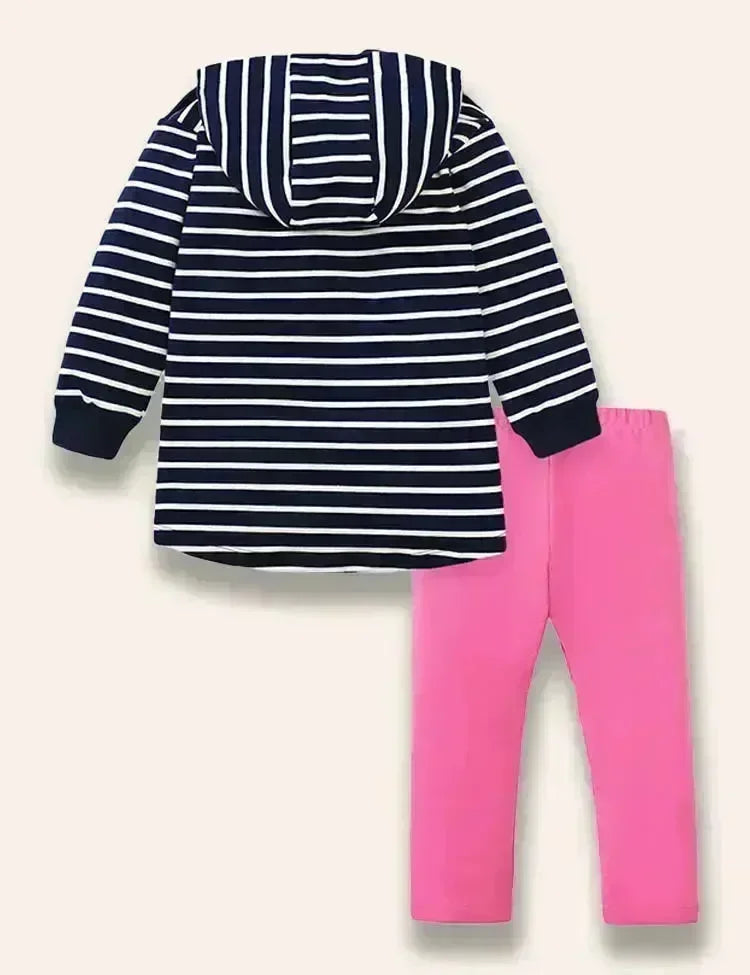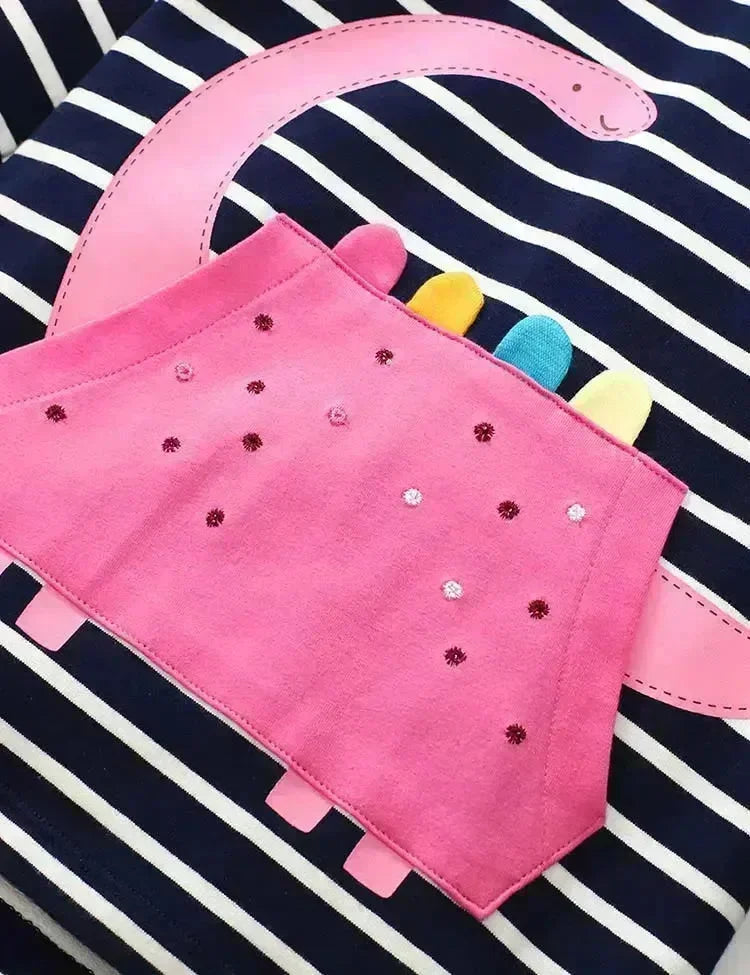 طقم سويت شيرت مخطط بغطاء للرأس مزين برسوم ديناصور لطيف