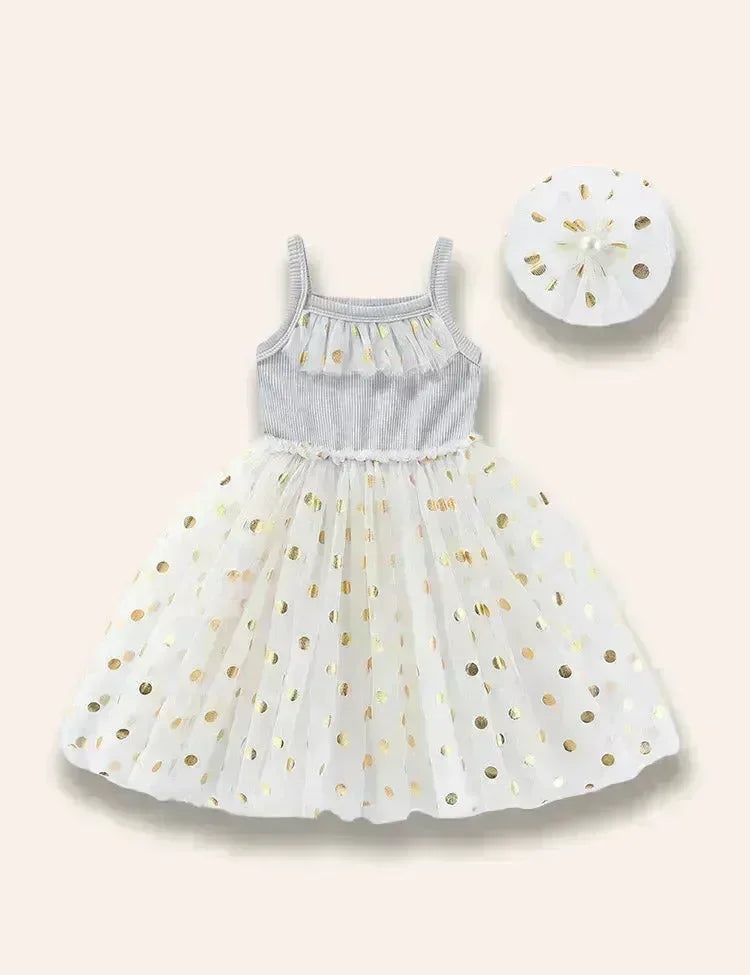 مجموعة فستان الحمالات من التول المنقط