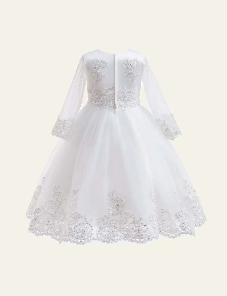 فستان حفلات شبكي مزين بالترتر بلون نقي