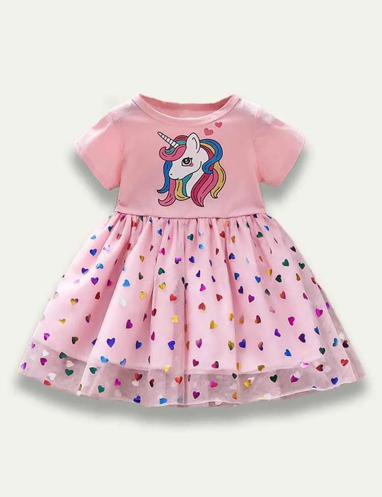 فستان من التول على شكل قلب كارتوني وحيد القرن