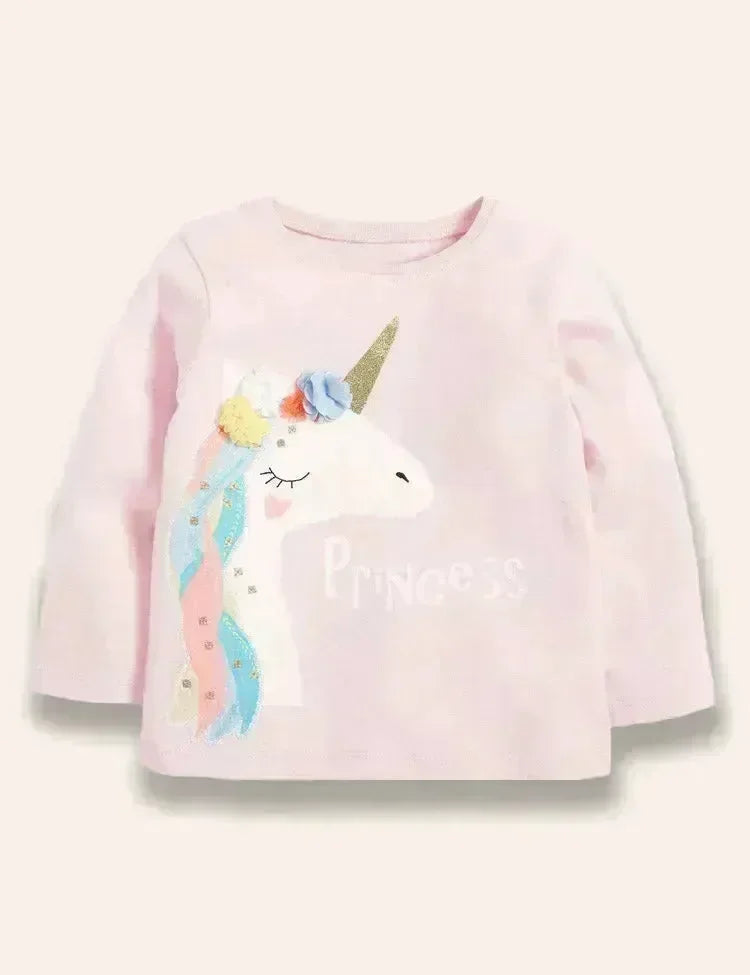 تي شيرت بأكمام طويلة ورسوم كرتونية وحيد القرن