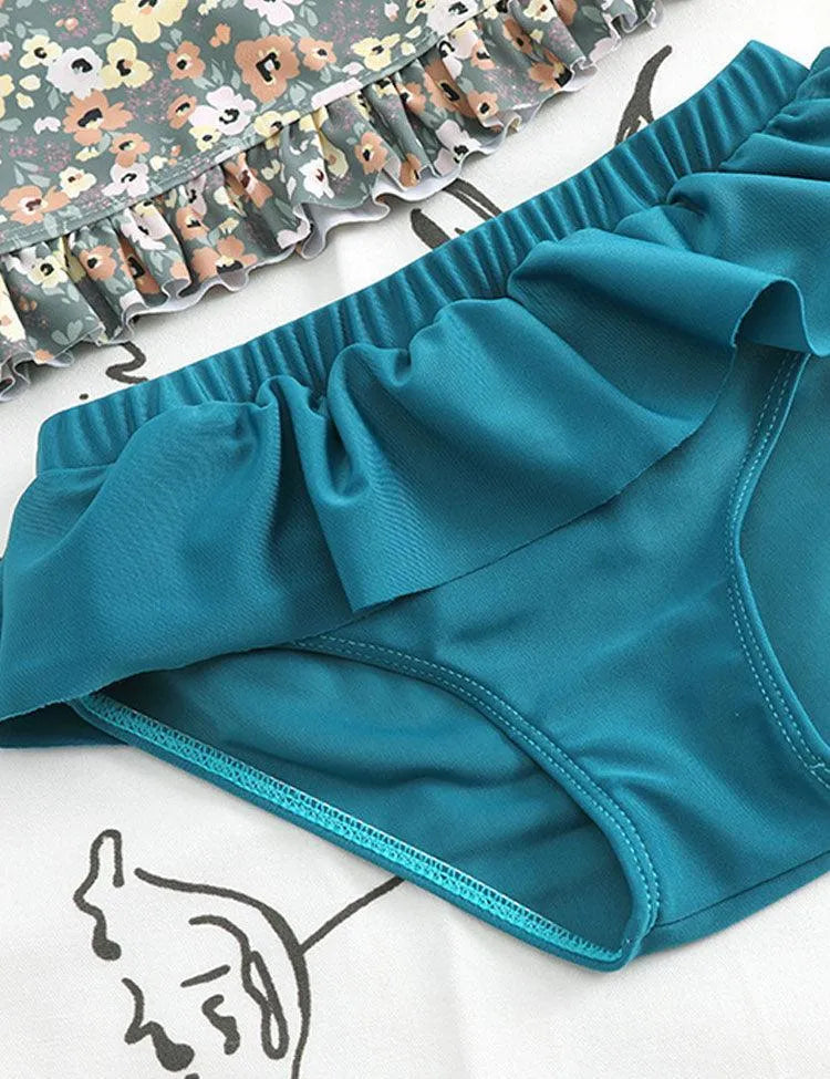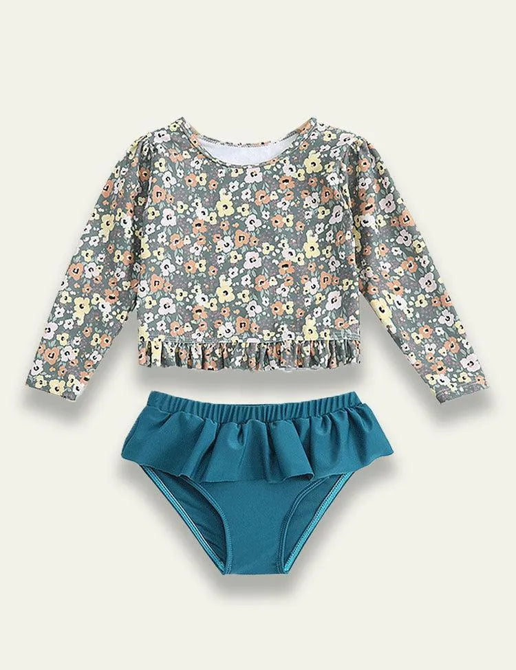 ملابس سباحة بحافة مكشكشة وأكمام طويلة