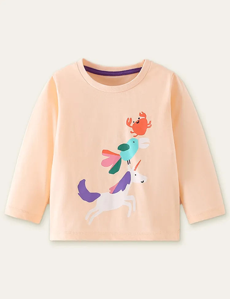 تي شيرت بأكمام طويلة وطبعة سرطان البحر ووحيد القرن