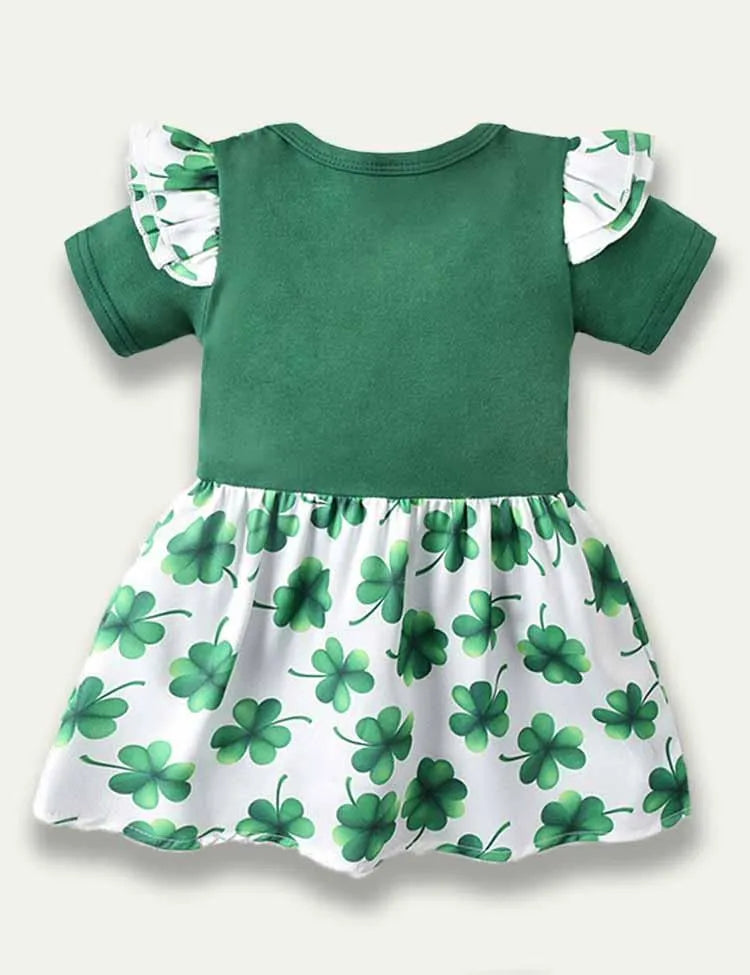 St. Patrick's Day Clover Letter Printed Romper Dress