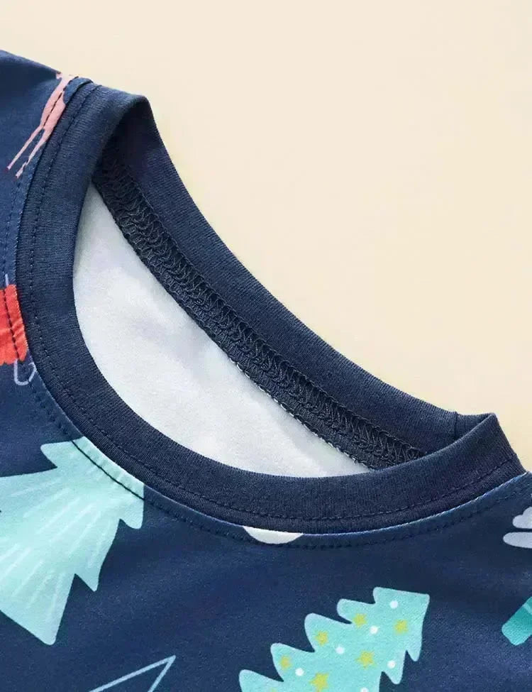 Christmas Tree Printed Blue Pajamas