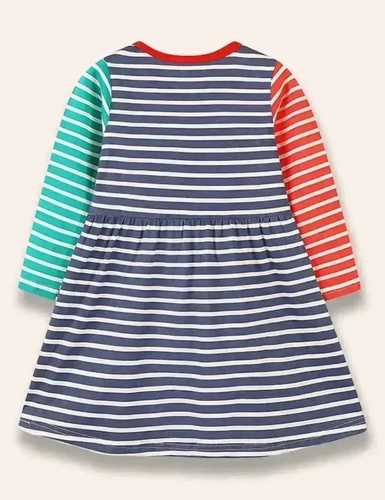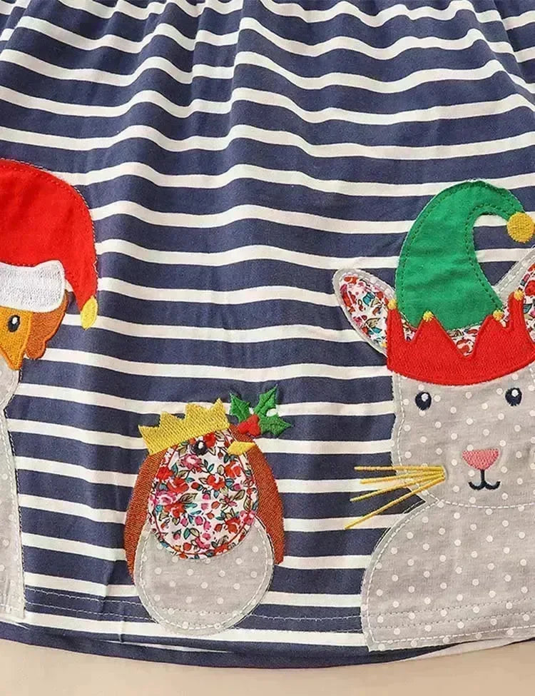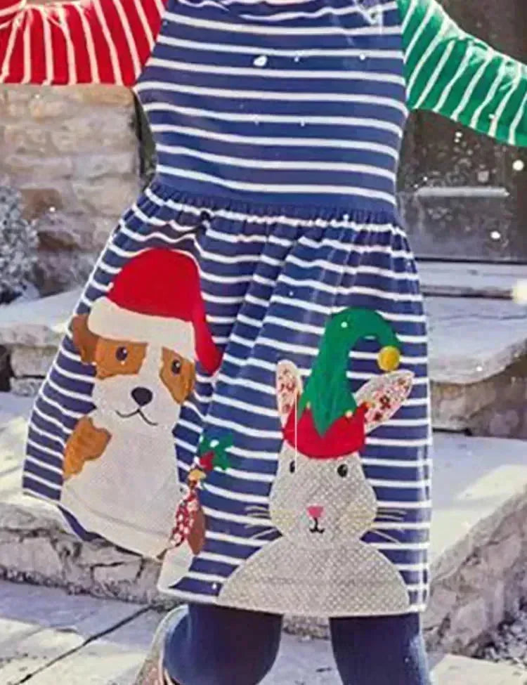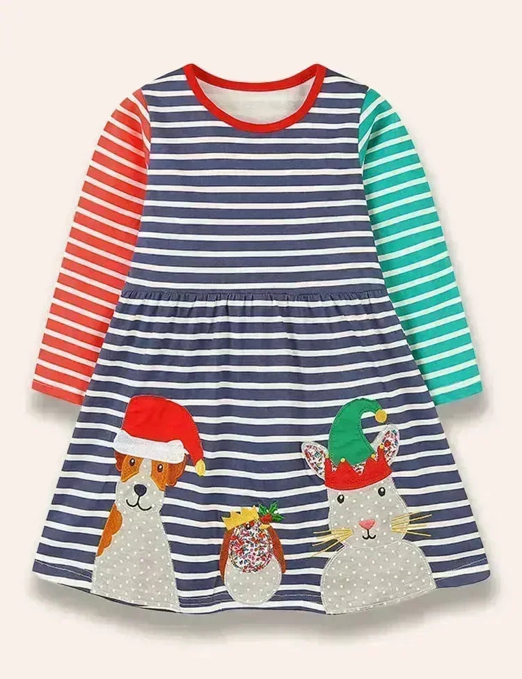 Christmas Animal Friend Appliqué Colorblocked Dress