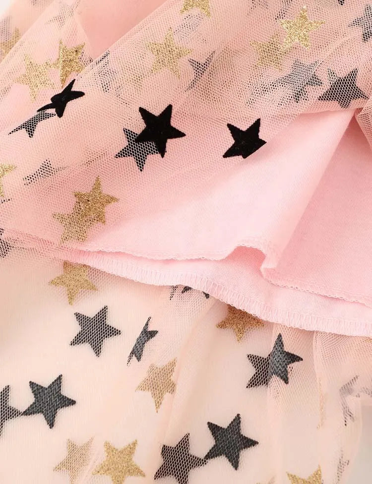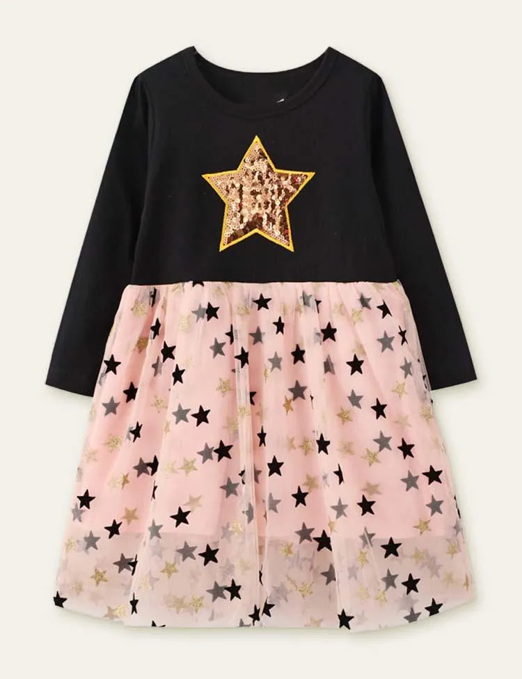 Star Printed Mesh Long Sleeve Dress
