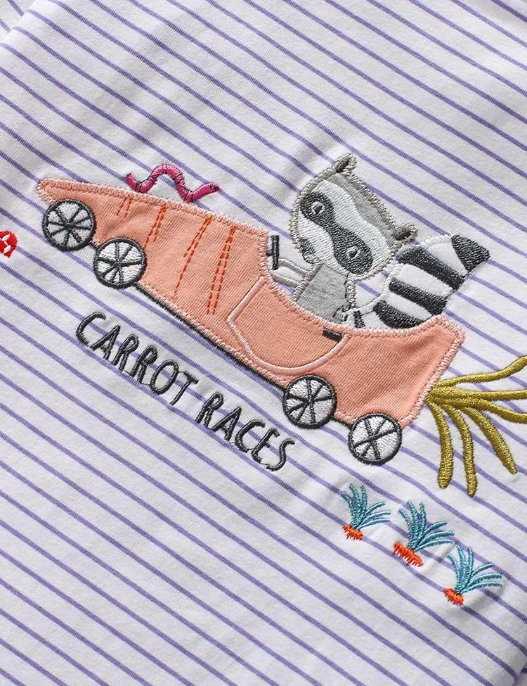 Cartoon Raccoon Appliqué Striped Long Sleeve T-Shirt
