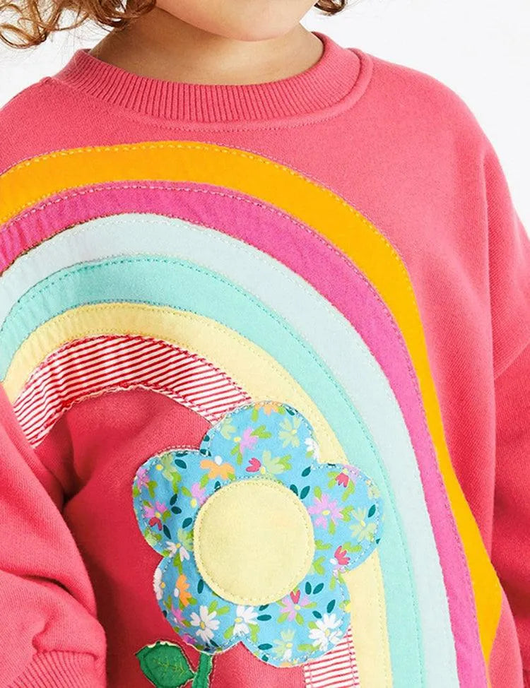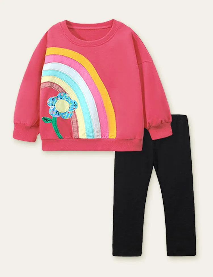 Rainbow Flower Appliqué Sweatshirt Set