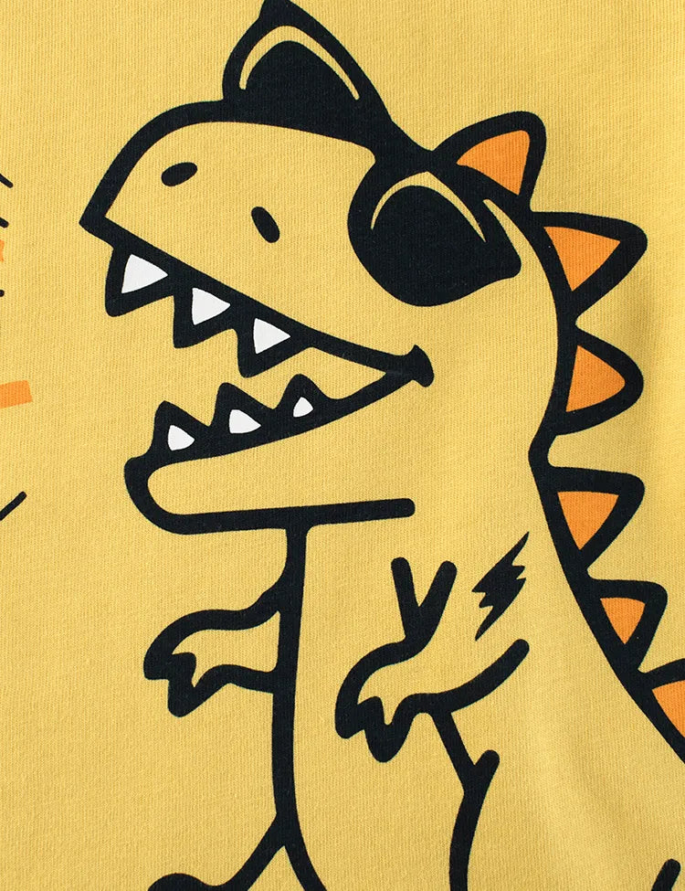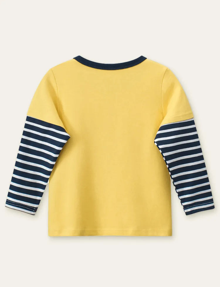 Singing Dinosaur Printed Fake Two-Piece Long-Sleeved T-shirt