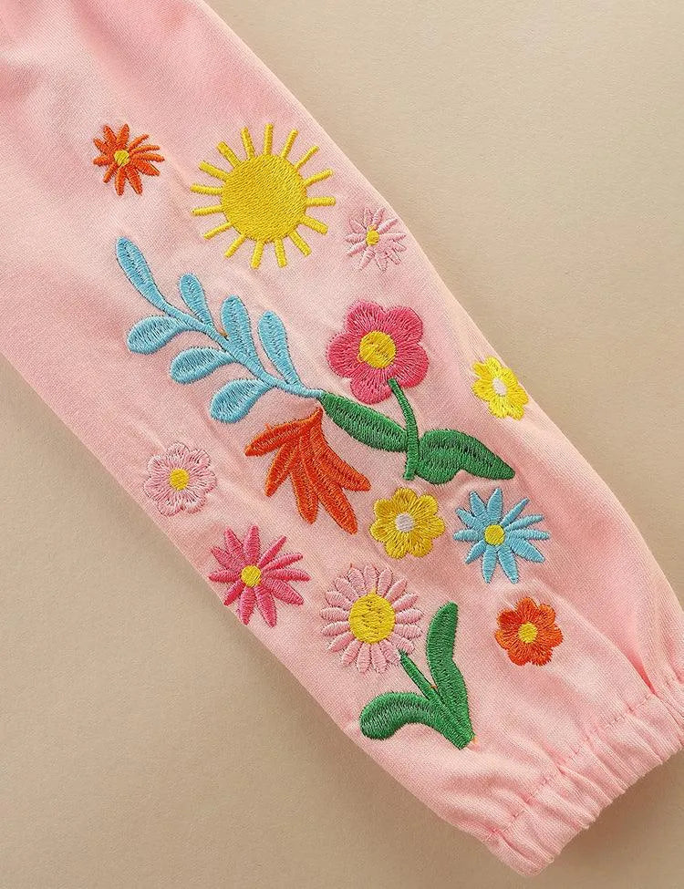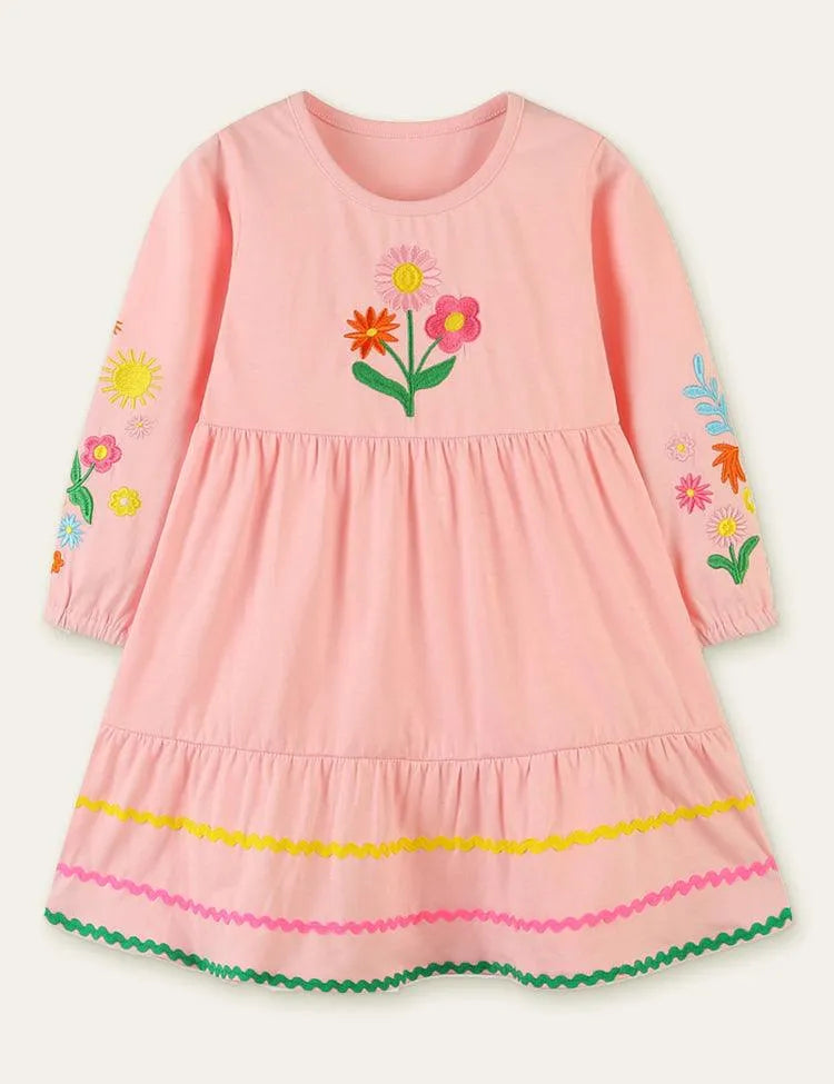 Flower Embroidered Long Sleeve Dress