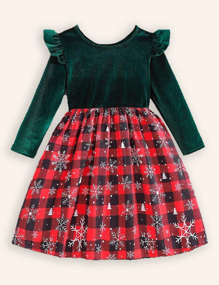 Christmas Velvet Snowflake Print Long-sleeved Dress