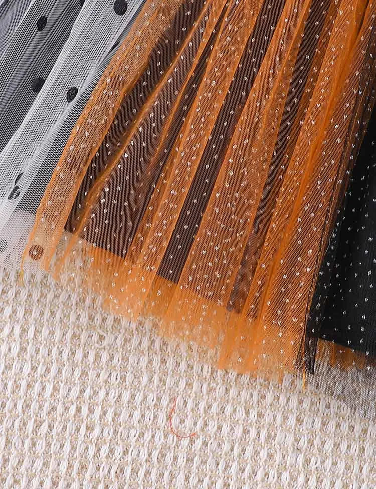 Halloween Polka Dot Tulle Dress Cape Two-piece Set