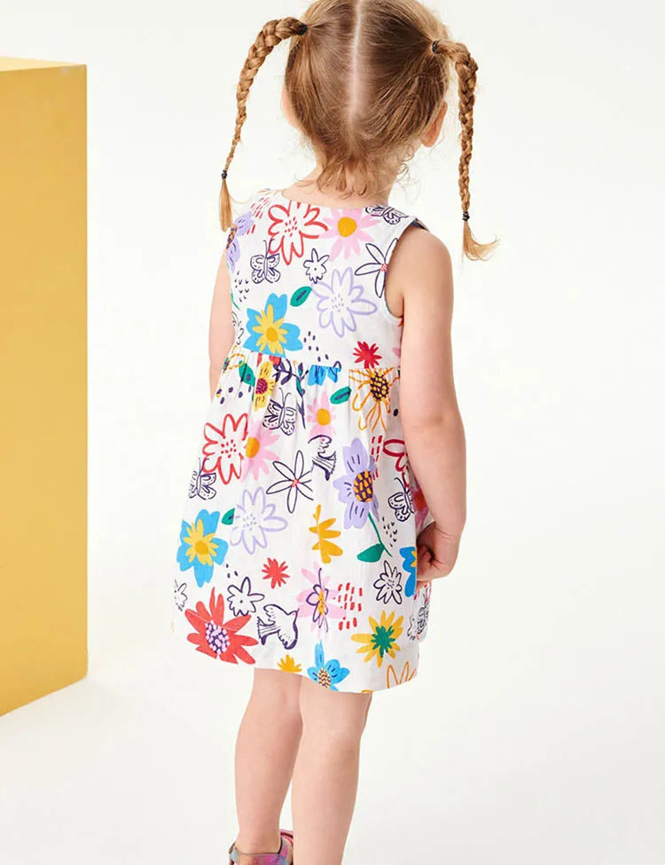 Multi Flower Printed Vest Dress