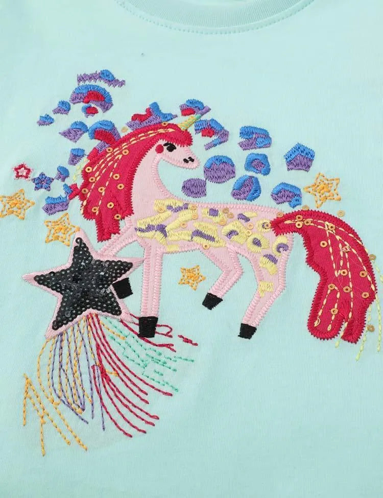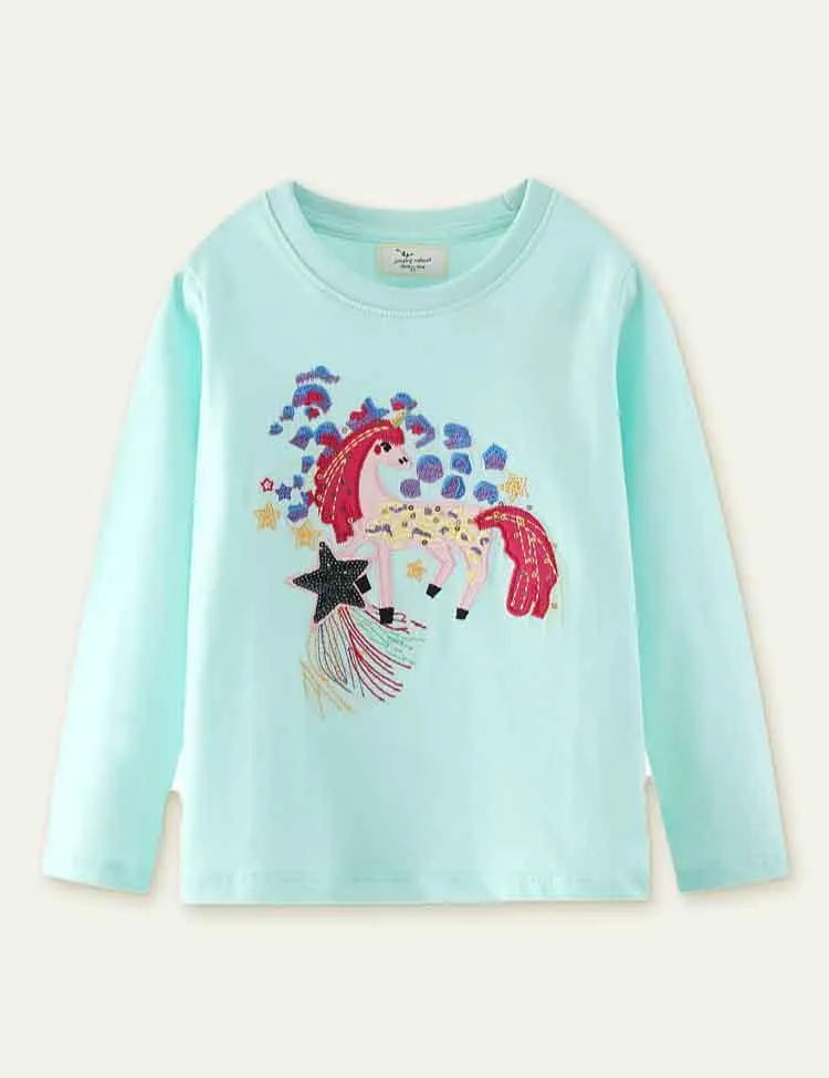 Unicorn Embroidered Long-Sleeved Bottoming Shirt