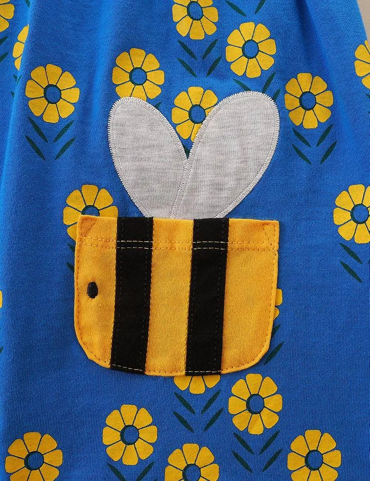Bee Pocket Flower Printed Long Sleeve Dress